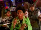 When a fan asks what makes thunder and lightning, Beakman enlists Liza in a few simple demonstrations to explain static electricity. Revealing that lightning is caused by the neutralization of enormous positive and negative electrical charges between the top and bottom of a cloud, Beakman then uses a metal bowl, polyethylene putty, and a metal can lid to show how lightning can be created at home. Turning to thunder, he notes it is the sound of the shock wave created as lightning heats the air. After "Beakmania" fields questions about fish that live out of water (mudskippers, walking catfish and lungfish), the largest human muscle (the gluteus maximus), and the size of a blue whale's tongue (over twelve thousand pounds!), Beakman turns to his able assistant for the "Liza Challenge." With a penny set atop a plastic ring placed on top of a soft drink bottle, Lester is challenged to make the coin drop into the bottle by hitting the loop. After Beakman's friend sends the penny flying, Liza shows how easy it is by hitting the inside of the ring and pulling the loop out of the way, allowing inertia and gravity to deposit the coin in the bottle with ease. In response to a question about what happens when a bone breaks, Beakman first calls on Liza to give a musical accounting of the bones in the body while Lester sings about their use for support, movement and protection. Noting that bones are light in weight but very strong, Surfer Beakman uses a broken surfboard to demonstrate their three basic steps to healing ?? a hematoma, a fibrous lacing containing osteoblaths and, finally, a callous.