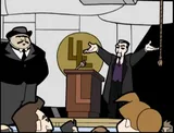Randal is left in charge of the Quick Stop as part of a bet between him and Dante. Jay sues the Quick Stop for $10,000,000 after slipping on Randal's spilled soda. Randal is Dante's lawyer for the case, while Judge Reinhold presides, and several NBA all-stars are members of the jury. Randal ends up doing more harm than good, putting Dante at the mercy of the courtroom. Before the verdict of the case can be announced, a disclaimer informs the audience that the script for the conclusion of the episode was lost, and the remainder of the episode will be told through Korean animation.