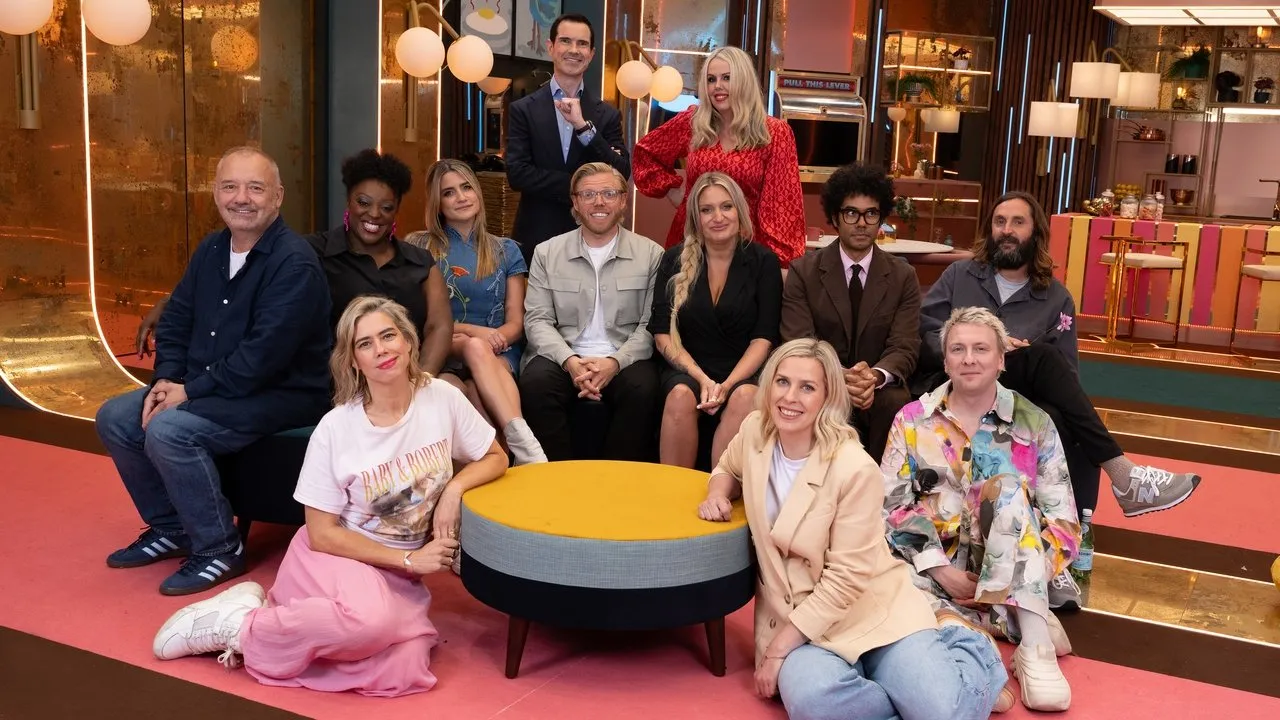 Jimmy Carr oversees the chaos while Bob Mortimer, Daisy May Cooper, Harriet Kemsley, Joe Lycett, Joe Wilkinson, Judi Love, Lou Sanders, Rob Beckett, Richard Ayoade, Roisin Conaty and Sara Pascoe try to make each other laugh without cracking a smile.